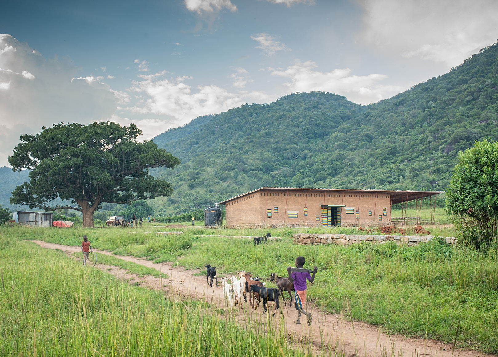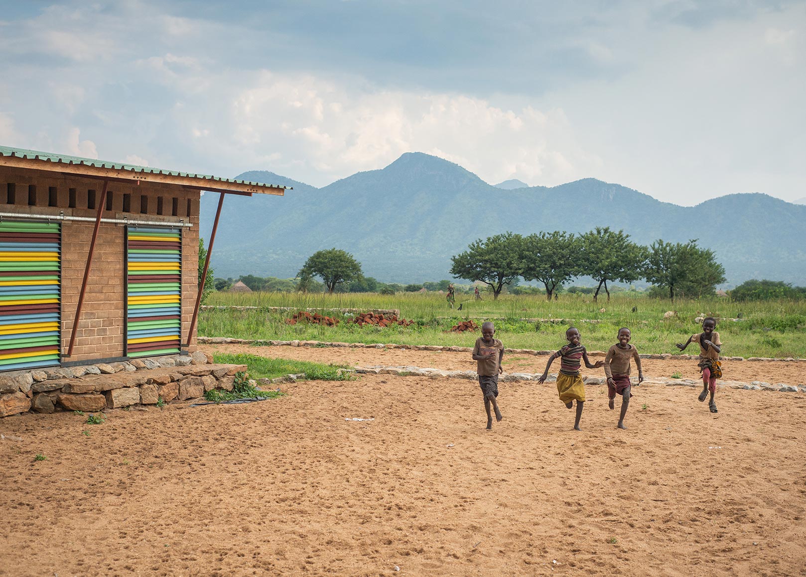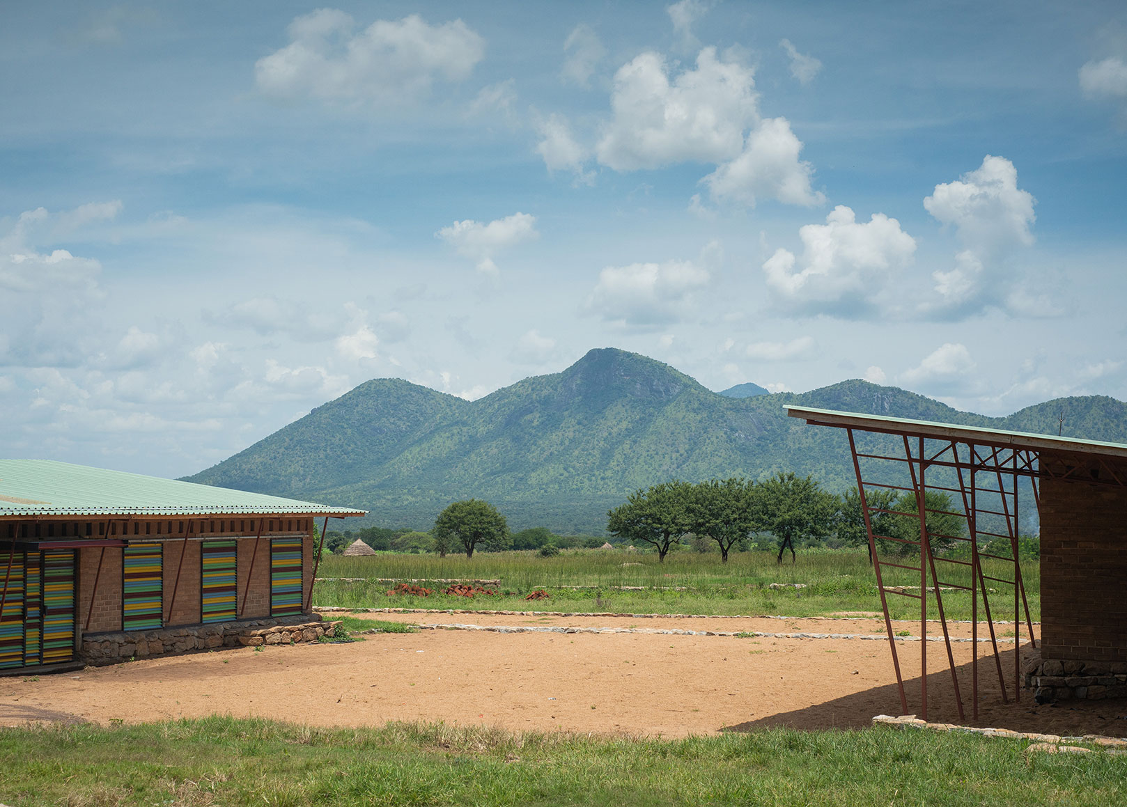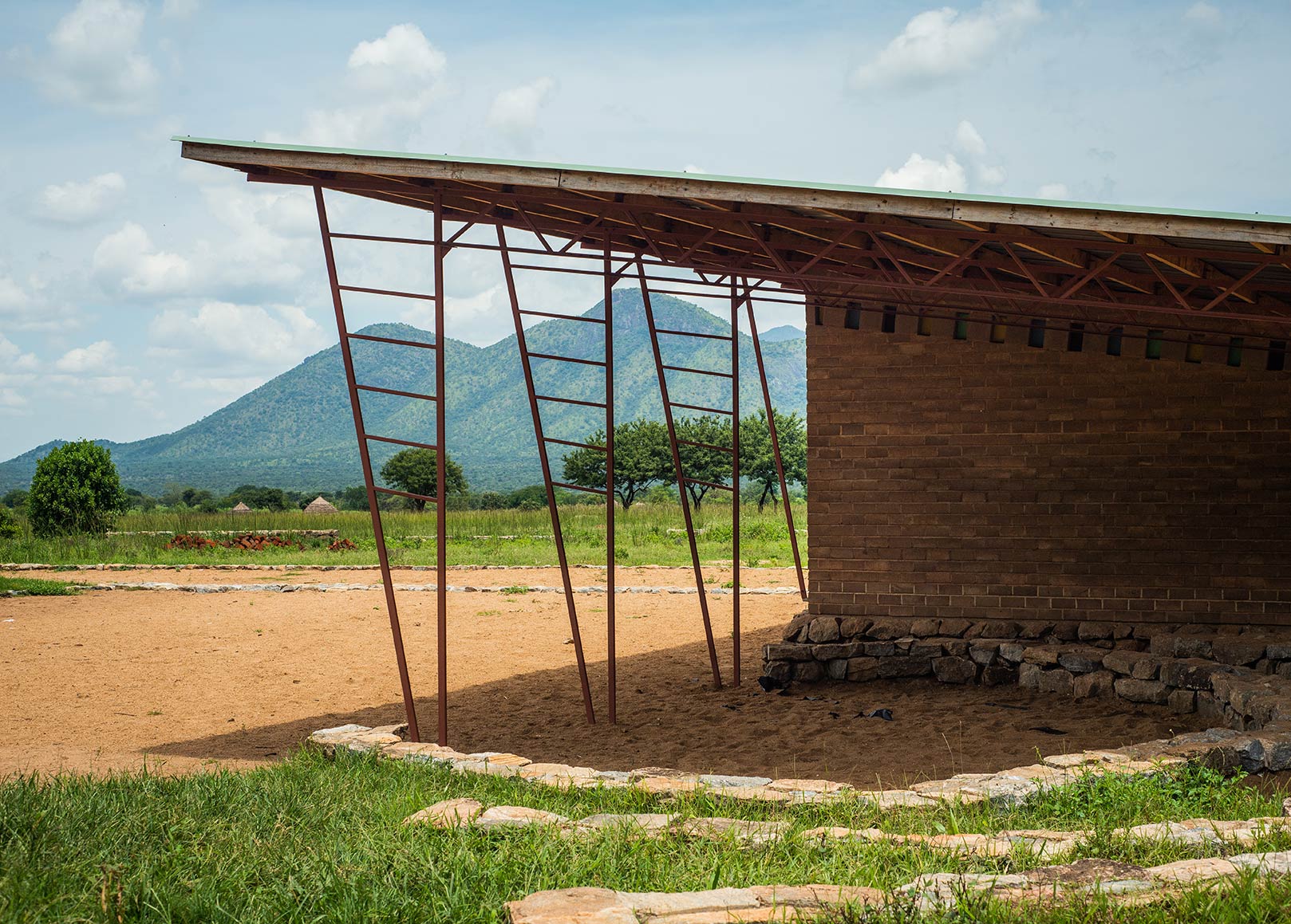 Due to the remoteness of the sites and the associated high transport costs, building materials were carefully selected to be sourced locally wherever possible. The Kidepo area has beautiful local stone which was utilised for foundations and plinth walls. Compressed earth blocks, manufactured on site, form the upper part of the walls. The steel roof trusses were designed to be so light that two workers could left them in place without using machinery, and so slim that the roof structure of two entire schools fitted on a single truck. Sliding and top-hung steel louvre panels form windows and doors and provide a sturdy response to shading and security requirements.