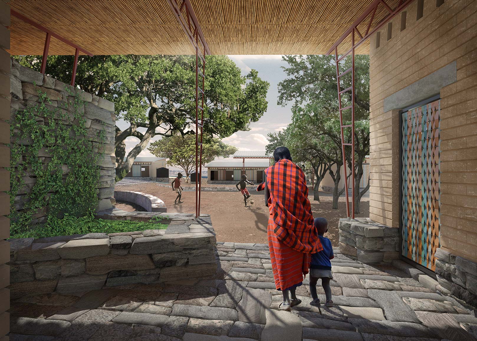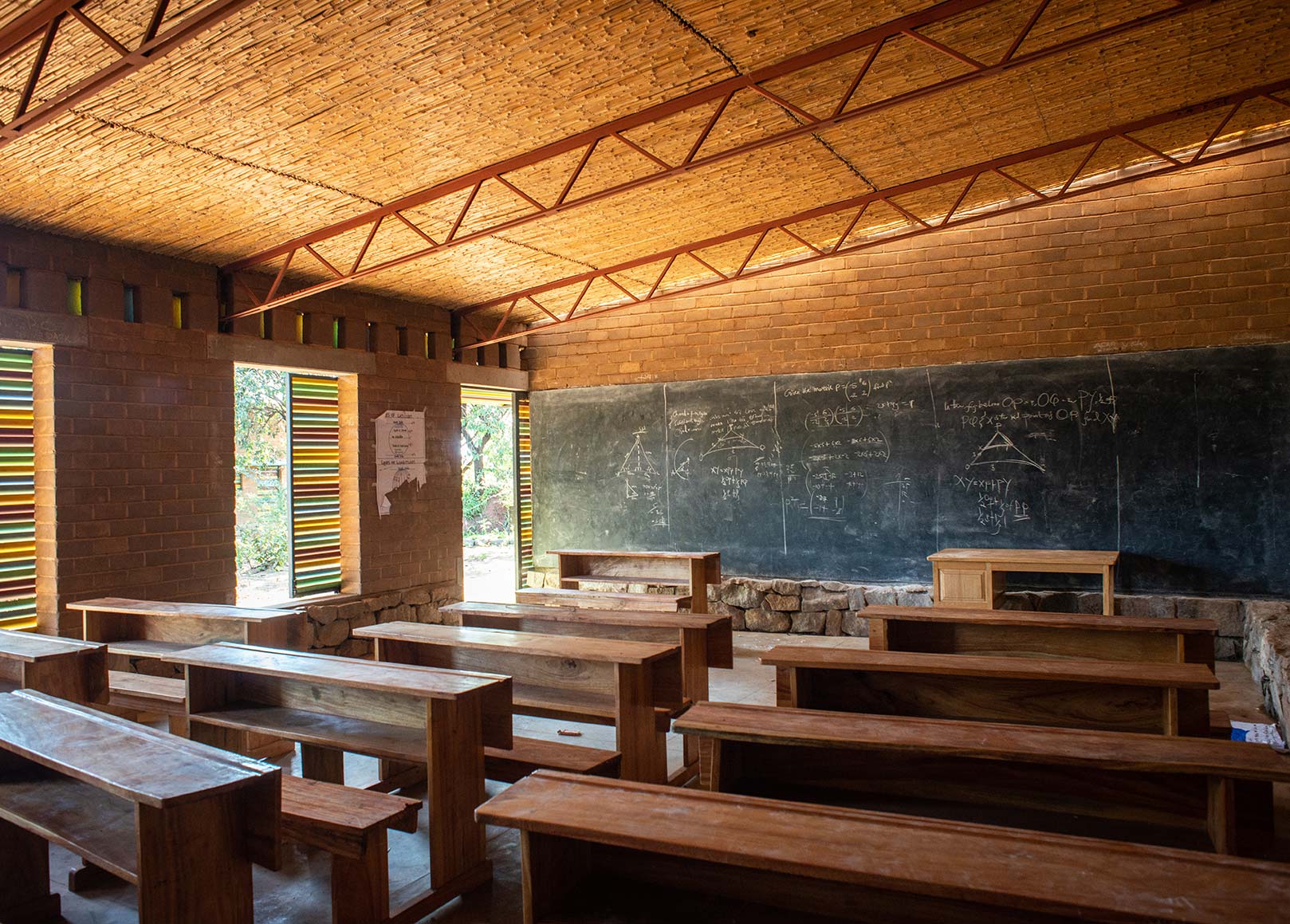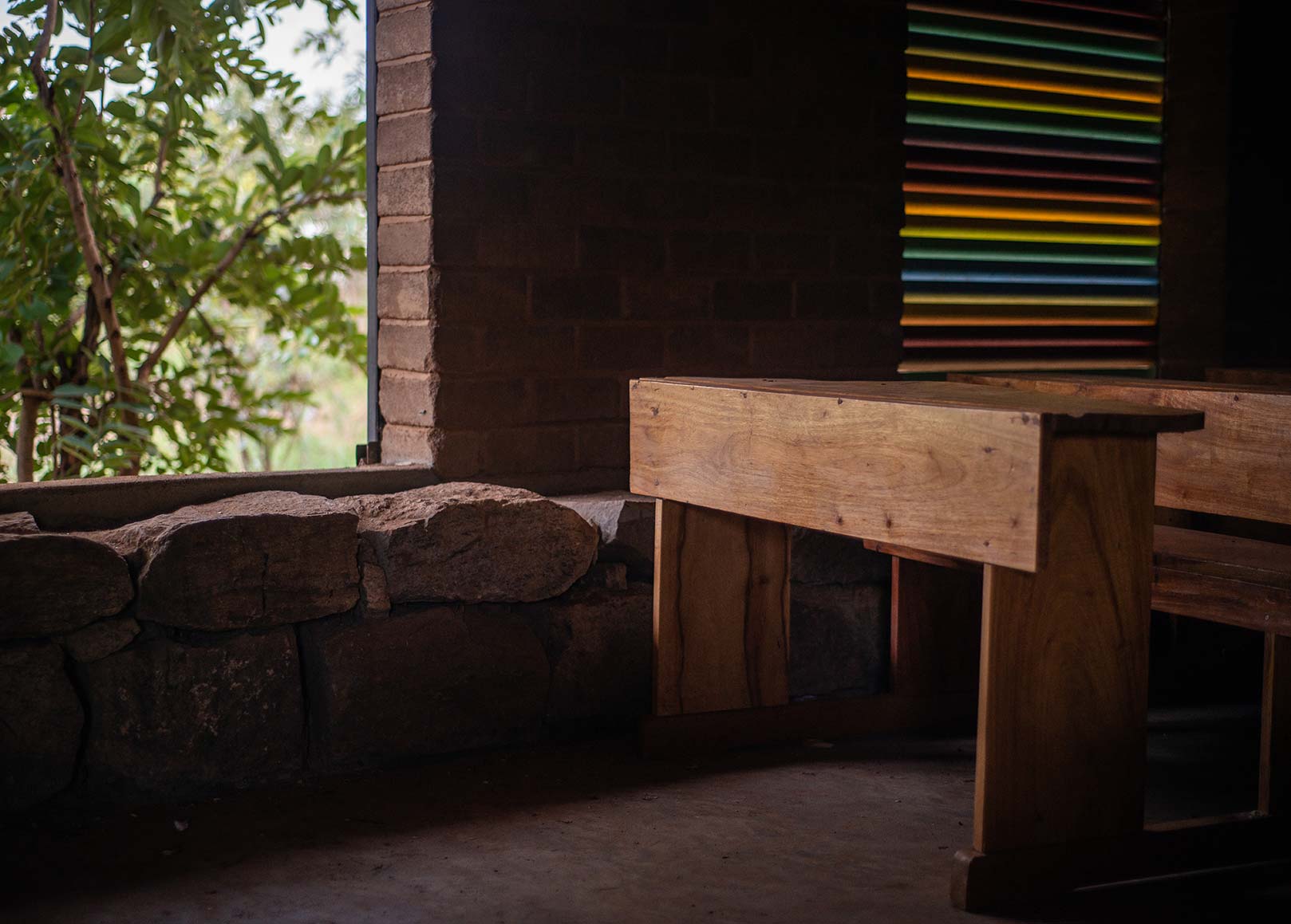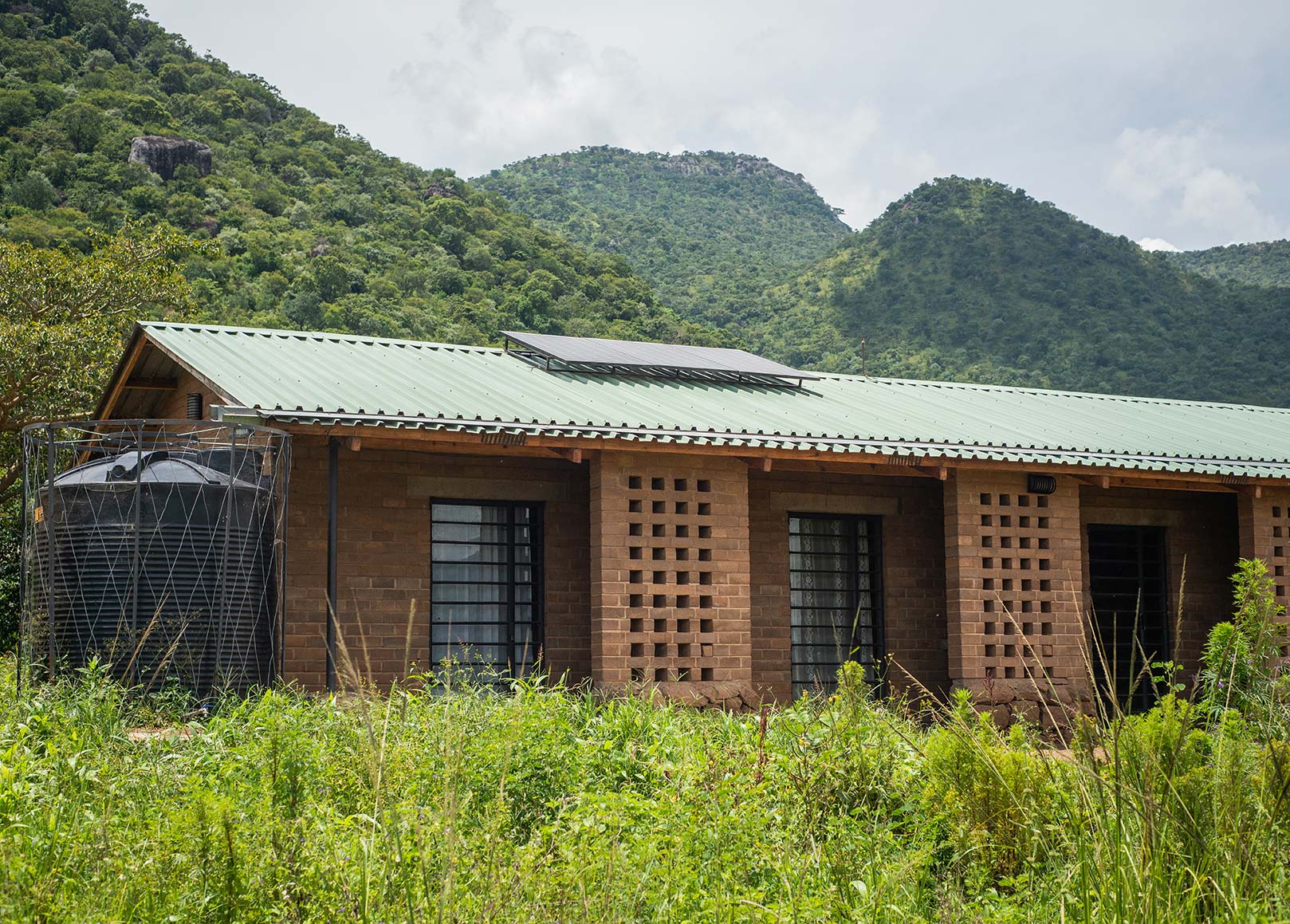 Due to the remoteness of the sites and the associated high transport costs, building materials were carefully selected to be sourced locally wherever possible. The Kidepo area has beautiful local stone which was utilised for foundations and plinth walls. Compressed earth blocks, manufactured on site, form the upper part of the walls. The steel roof trusses were designed to be so light that two workers could left them in place without using machinery, and so slim that the roof structure of two entire schools fitted on a single truck. Sliding and top-hung steel louvre panels form windows and doors and provide a sturdy response to shading and security requirements.