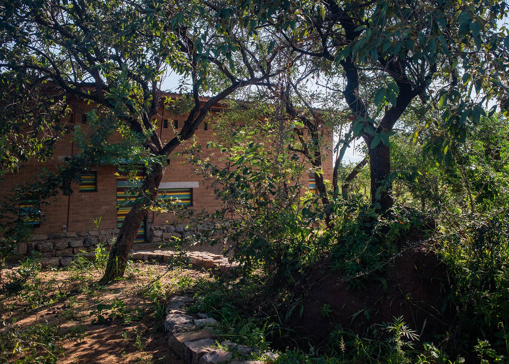 Special care was given to the landscape design which is seen by the Client as key towards fostering a better relationship between people and nature. Existing trees and shrubs were protected to an extraordinary extent, local species added and innovative forms of appropriate agriculture introduced in the form of demonstration farms and gardens. Appropriate technologies include rainwater harvesting, solar power, fuel-efficient wood stoves and 'aquaprivy' toilets.