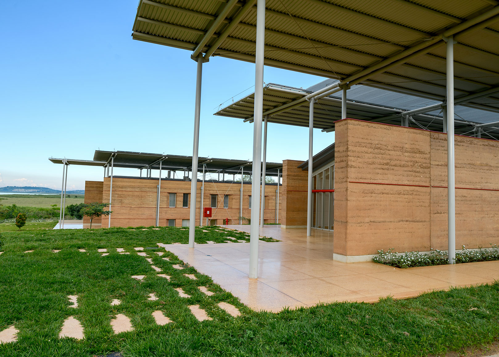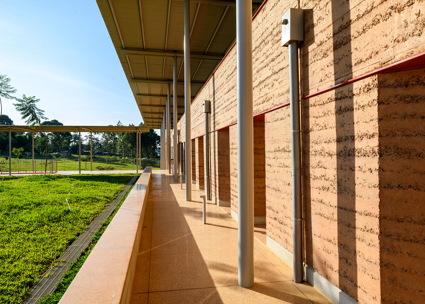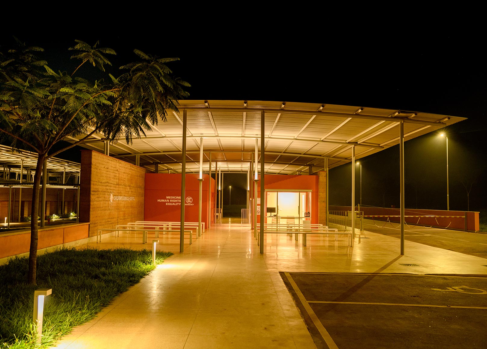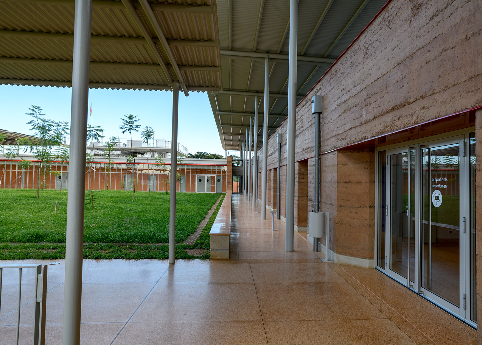 The hospital was designed by the Italian Architect Renzo Piano for whom this hospital is the first project in Africa, in partnership with TAMassociati. Key ingredients of the design are load-bearing rammed earth walls, partially two storeys high, and a 3,000m² photo-voltaic roof which produces a substantial part of the energy the hospital consumes.