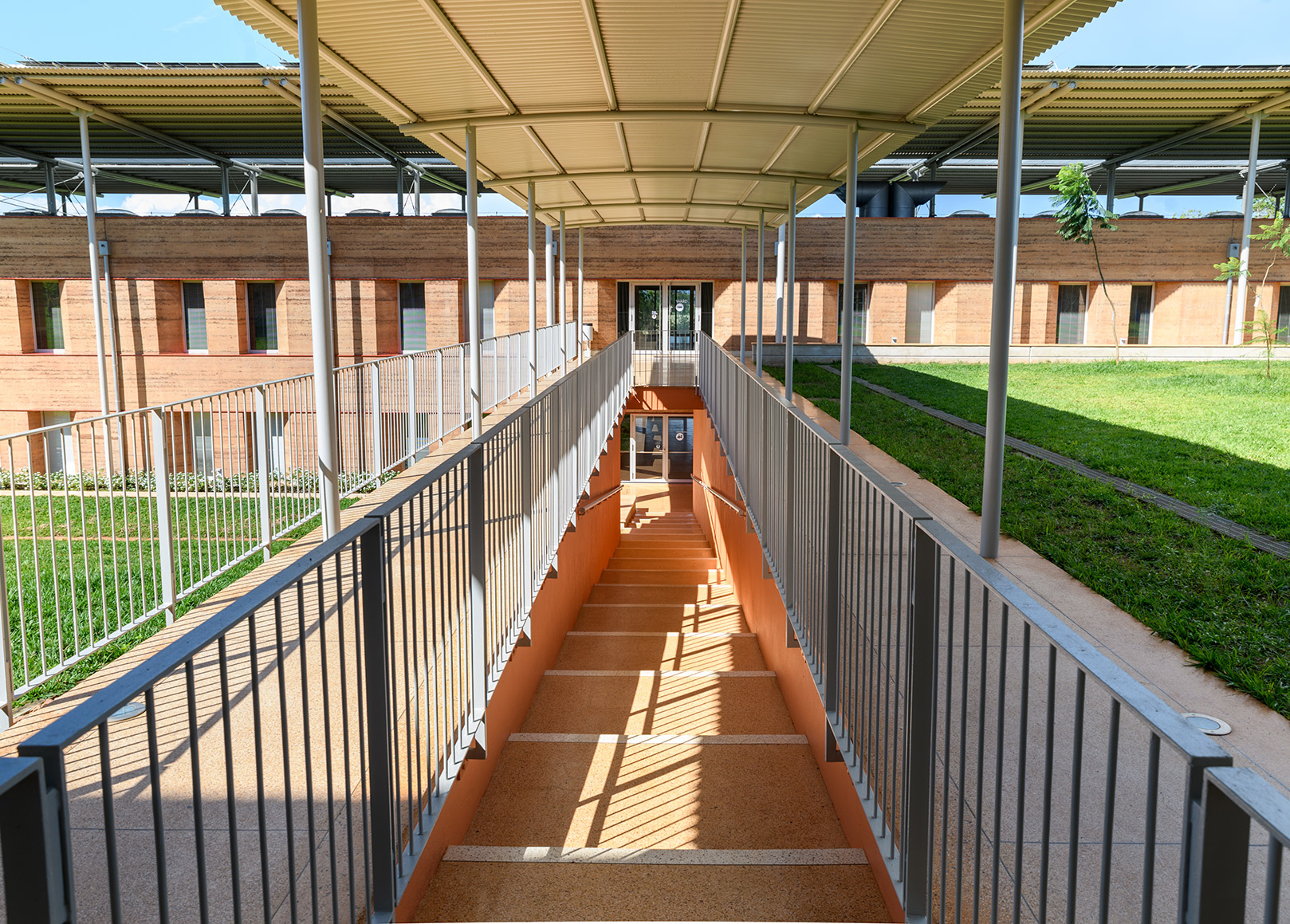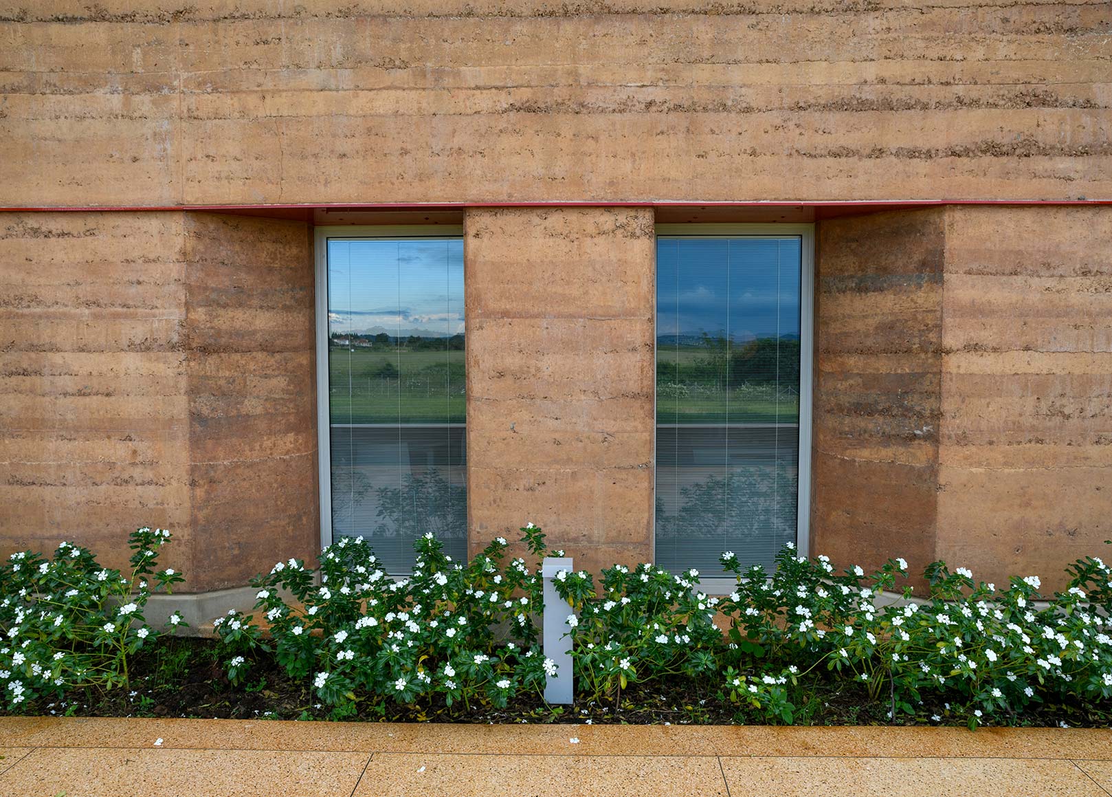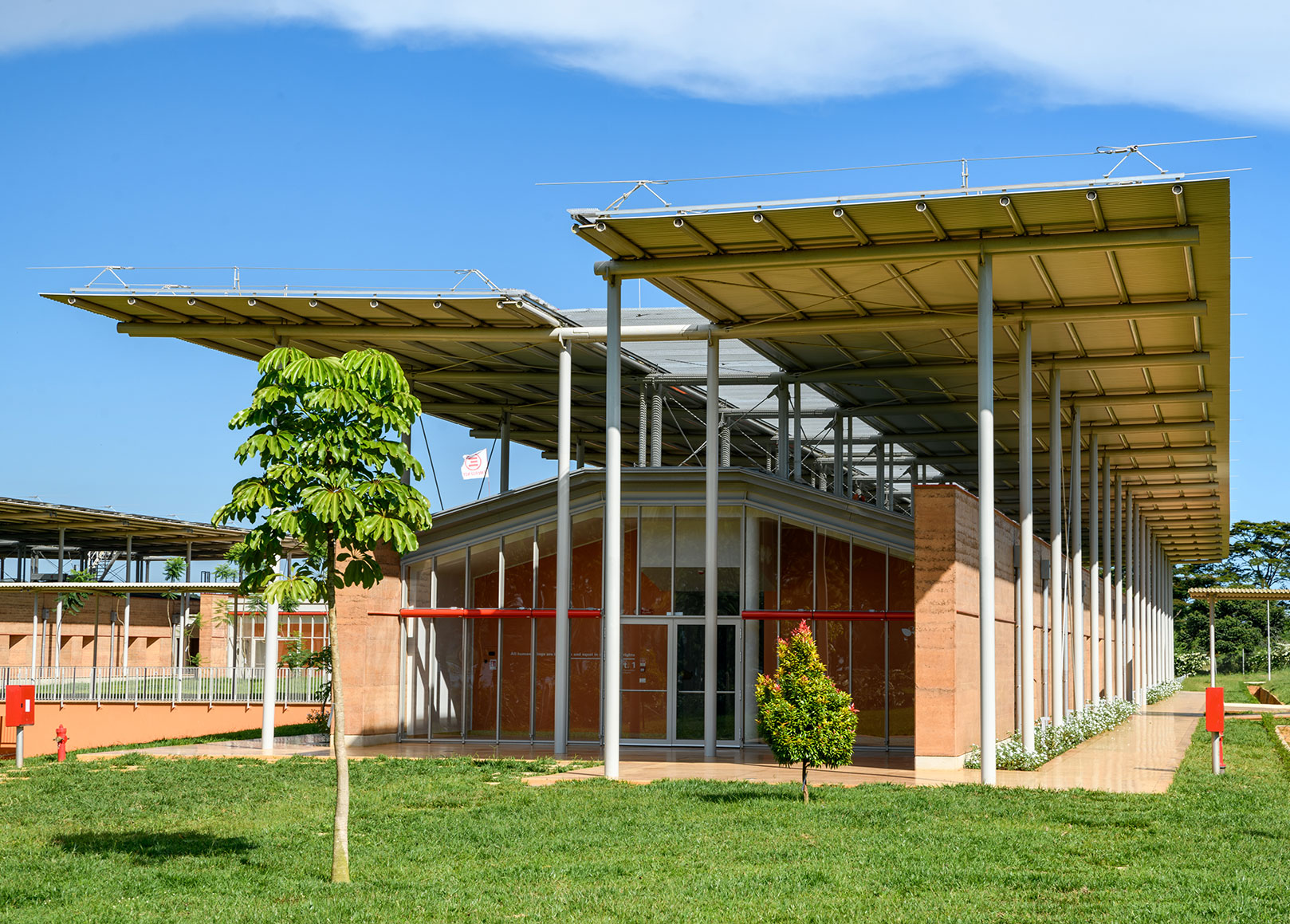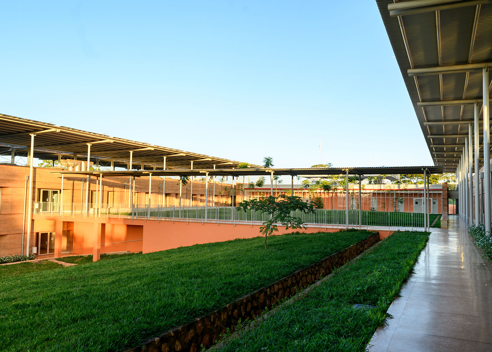The hospital was designed by the Italian Architect Renzo Piano for whom this hospital is the first project in Africa, in partnership with TAMassociati. Key ingredients of the design are load-bearing rammed earth walls, partially two storeys high, and a 3,000m² photo-voltaic roof which produces a substantial part of the energy the hospital consumes.