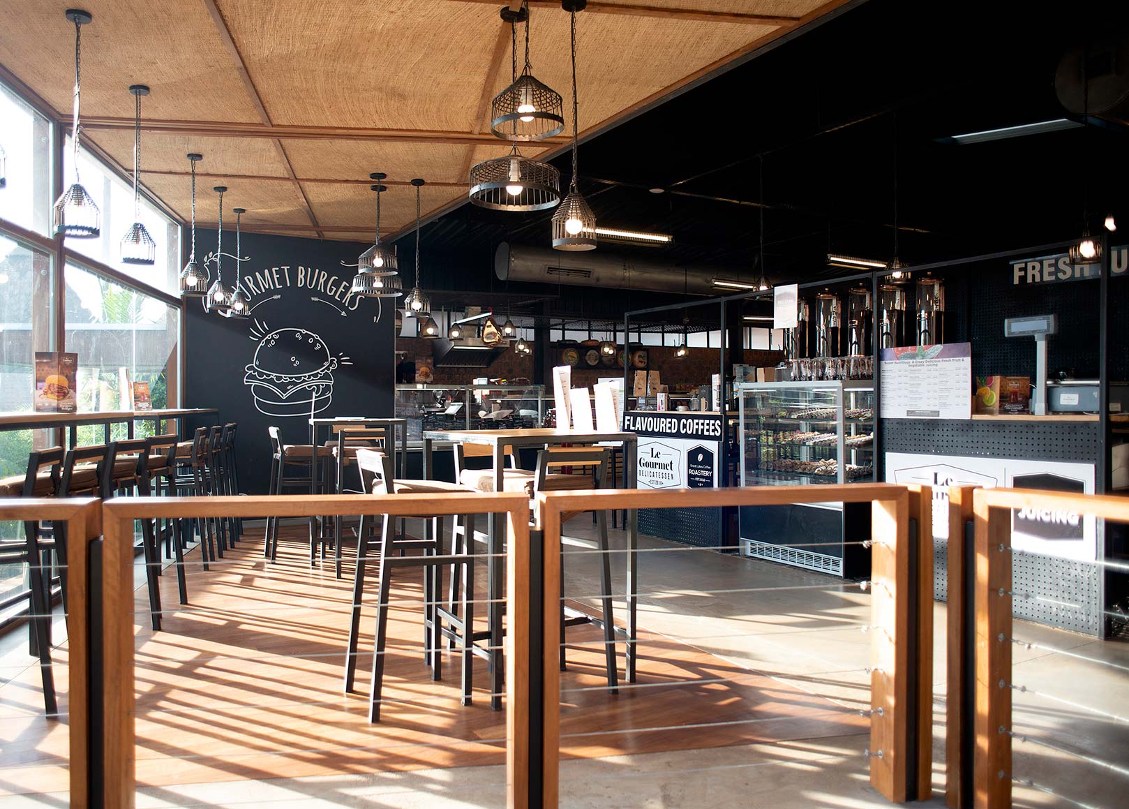 'Le Gourmet' is the latest addition to the Quality Hill boutique mall located along Ggaba Road in Kampala. Replacing the famous 'Quality Cuts' butchery, this new 450m² delicatessen shop was designed to strengthen the industrial aesthetic of the original structure and to offer a coffee roastery, juice and snack bar as well as a grocery store in addition to the deli's meat and cheese sections, all under one roof and feeling like an indoor market.