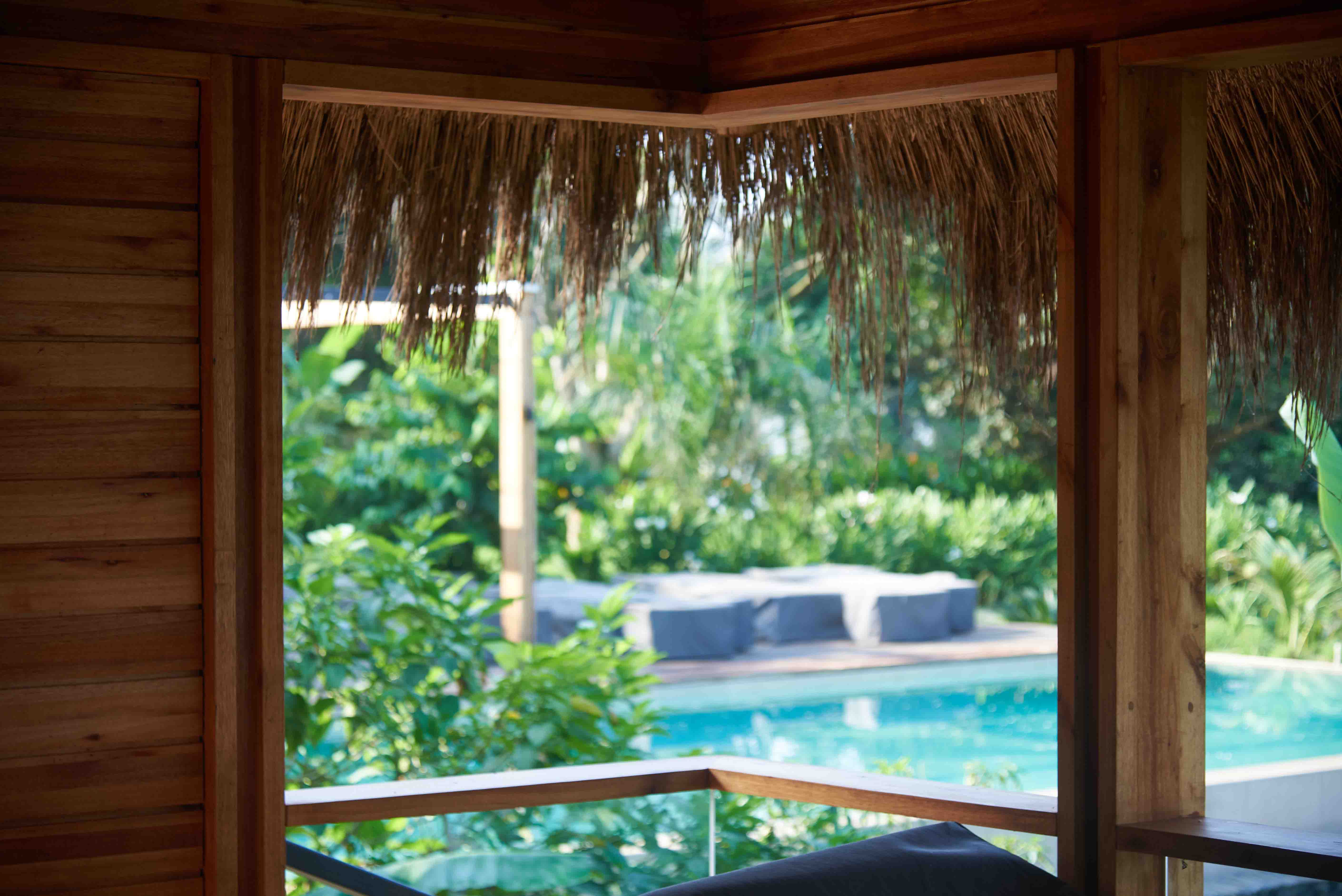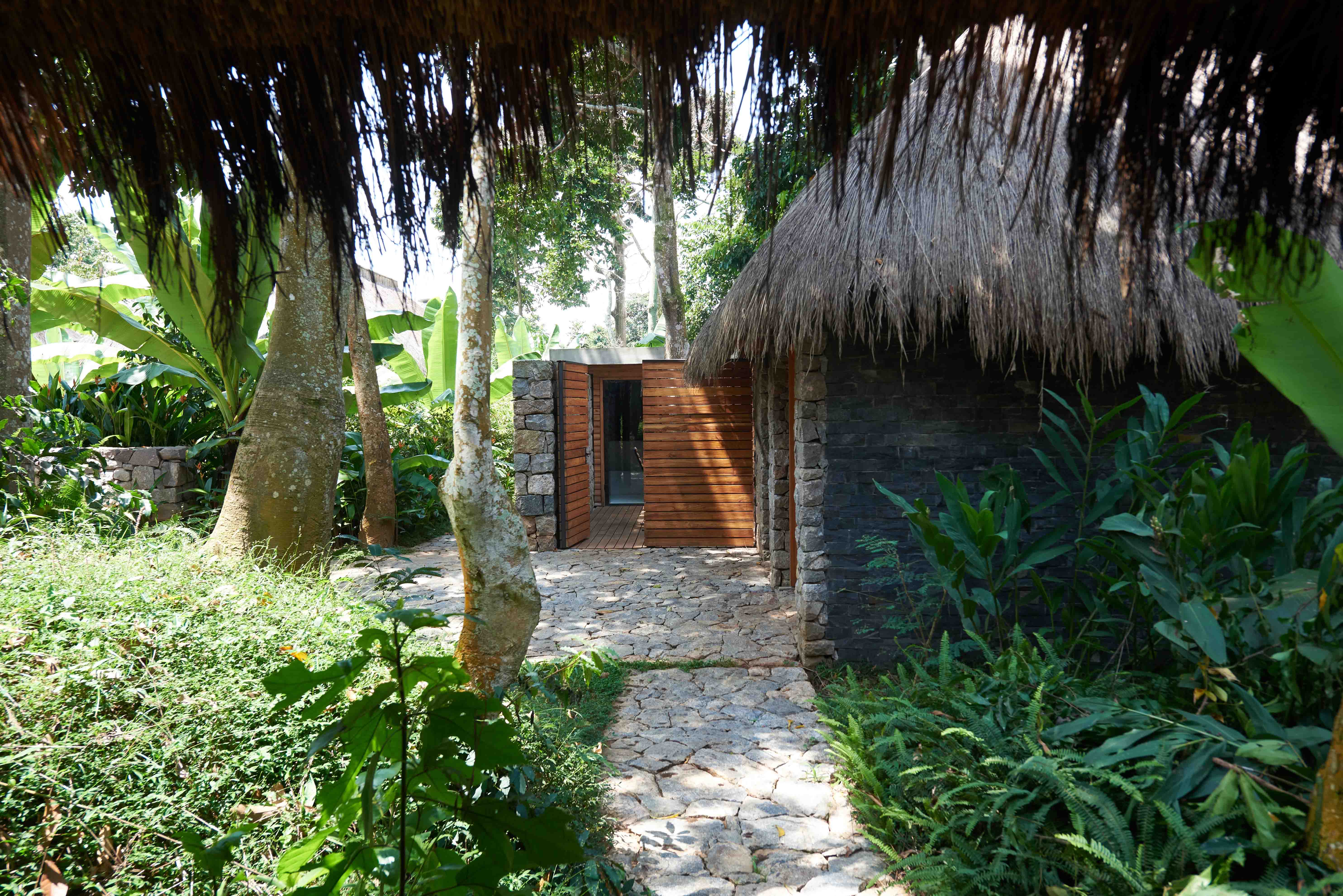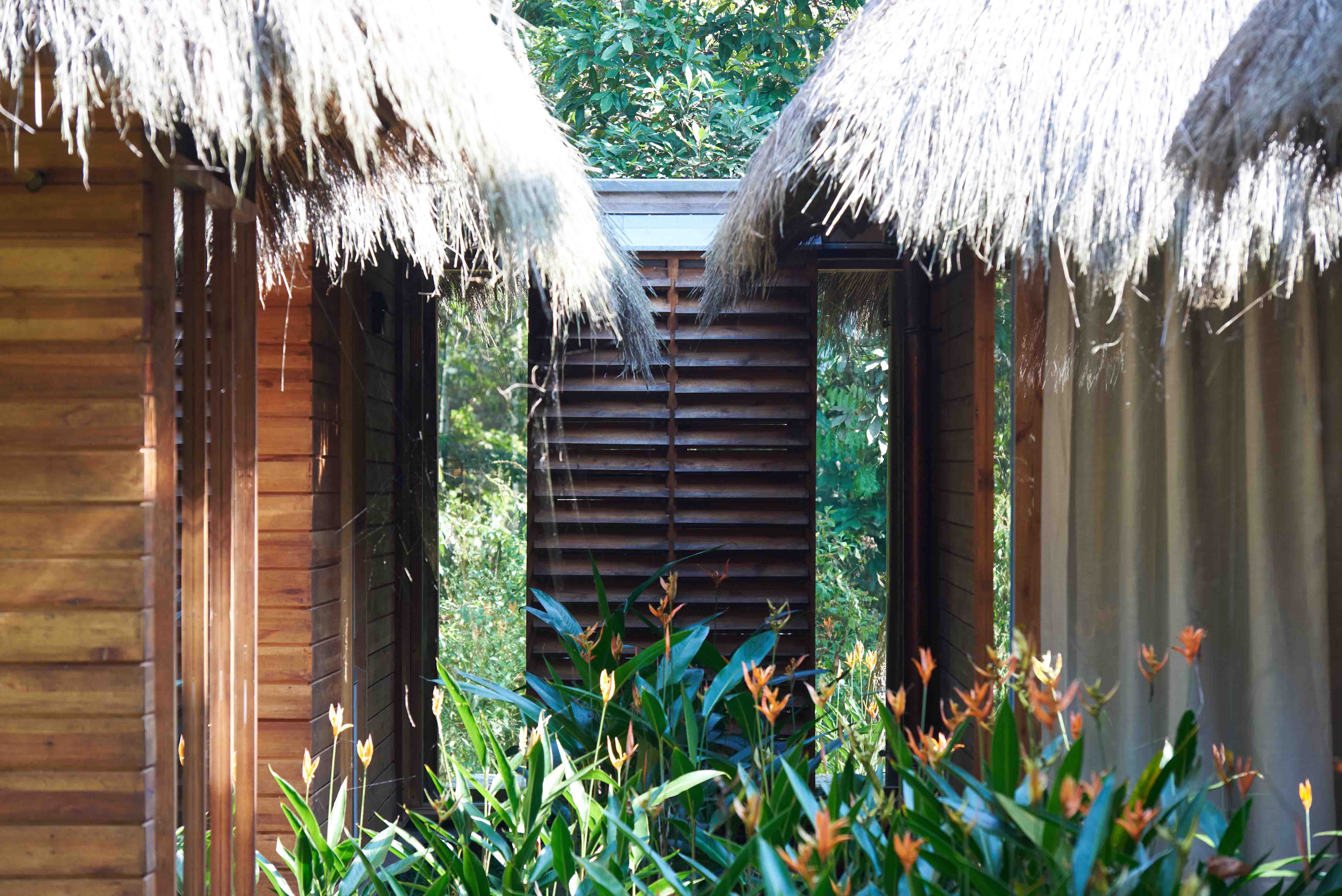 The cottages adopt an entirely different architectural personality, hovering above the forest floor on slender supports like elevated meditation pods. This lightness is both practical and poetic – elevating living spaces above the humidity whilst creating the sensation of dwelling within the forest canopy rather than merely beside it. Open-air showers, screened for privacy with woven metal panels, allow guests to bathe under the sky – luxury redefined as connection to the elements.