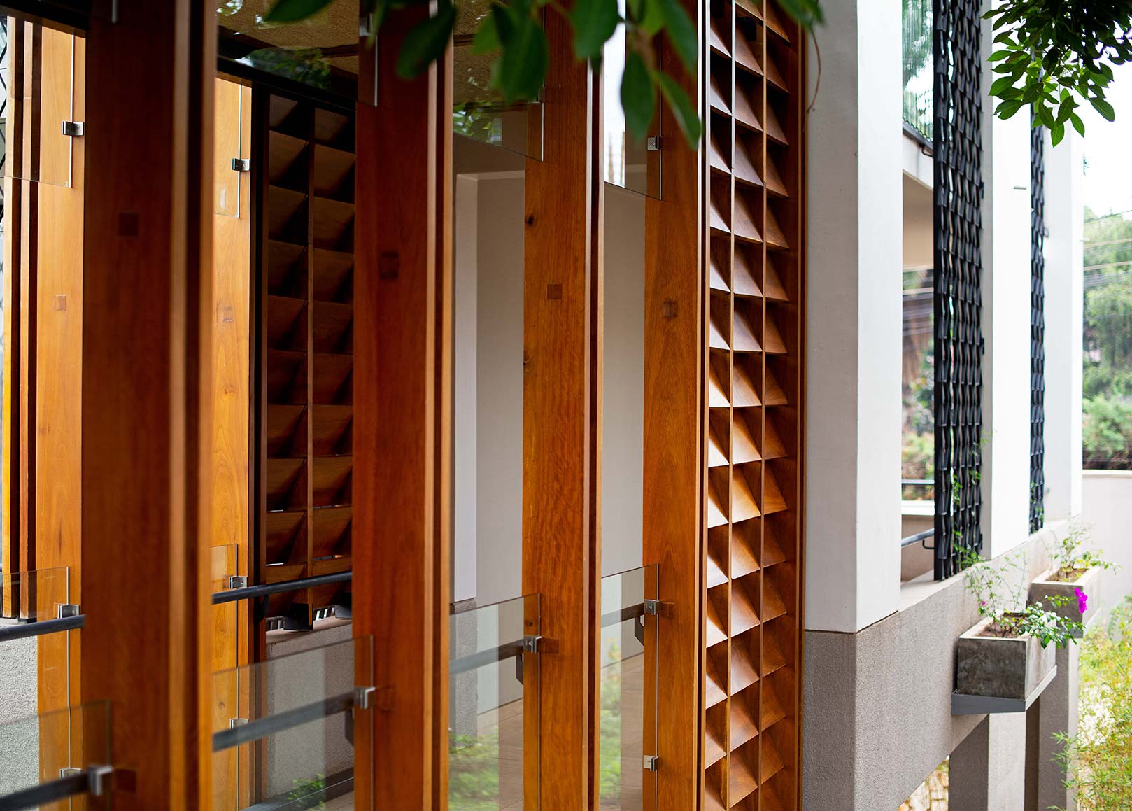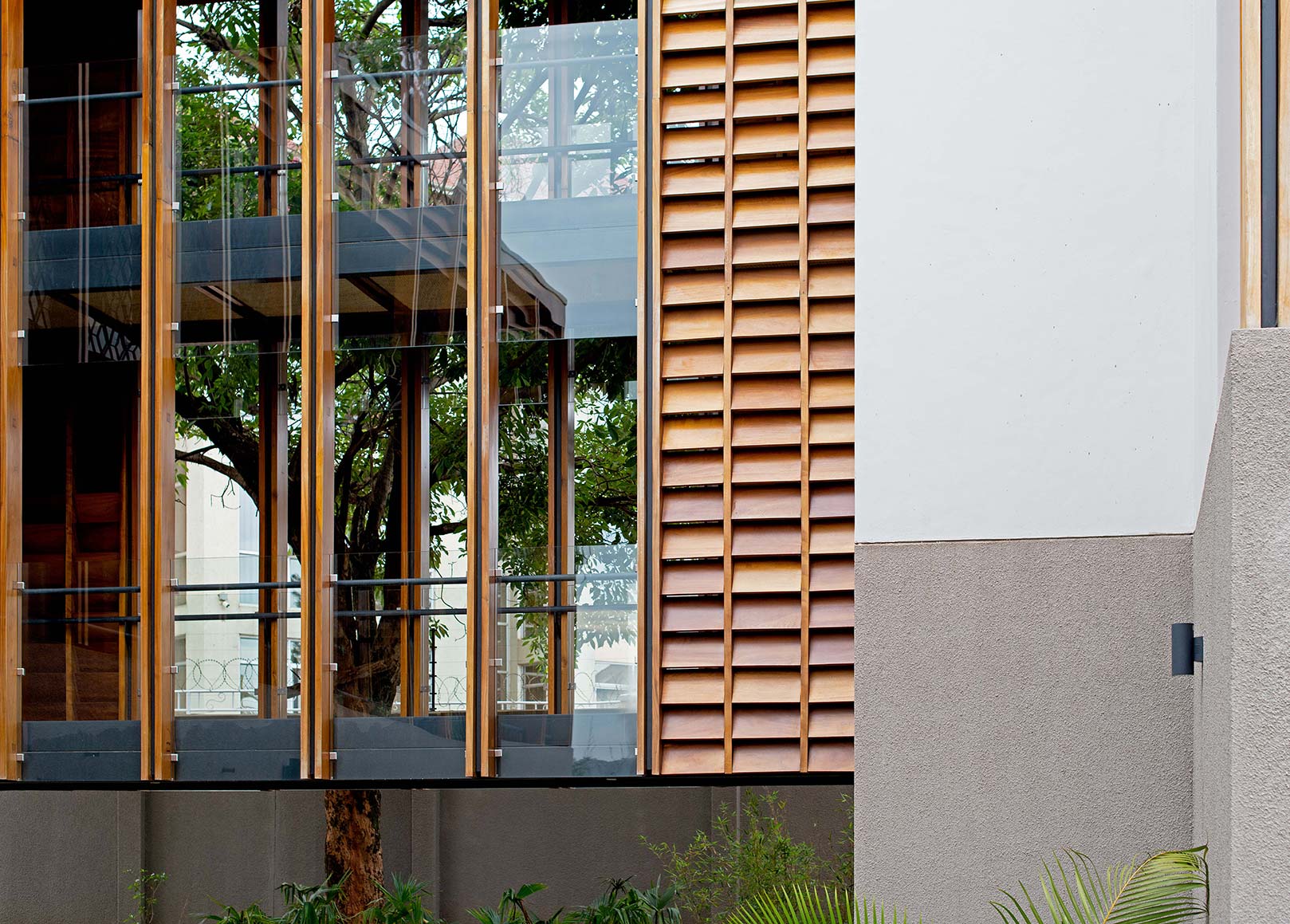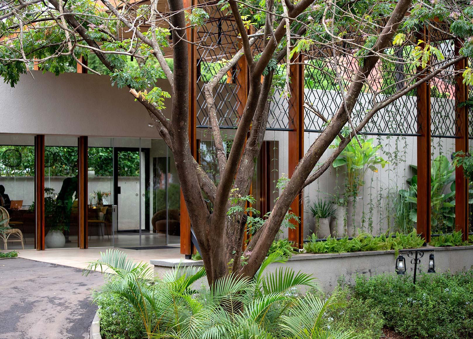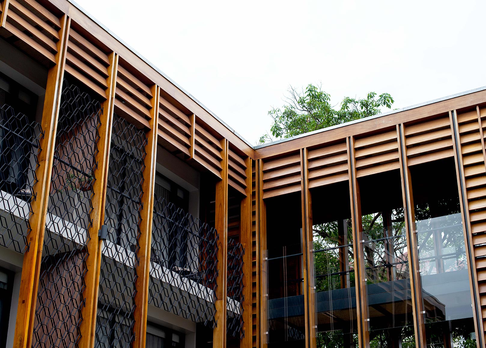 The original hotel design was based on a ‘lodge in the city’ theme but, having seen the market develop over the years, the Client saw opportunities in a business hotel, providing high standards of service and finishes in more conventionally sized and arranged hotel rooms. Our challenge, architecturally, was to continue the language of the ‘wooden flat roofs’ employed at the restaurant, coffeeshop and delicatessen into something that would work on a multi-storey building. This led to the balconies facing the inner garden being clad in wood, and making use of similar steel grille details as the ones found in the restaurant. With construction of the hotel extension underway, we took the opportunity to revamp the reception and drop-off area as well, giving Petit Village a proper entrance at last, along with improved presence and visibility to the casual Quality Hill visitor.